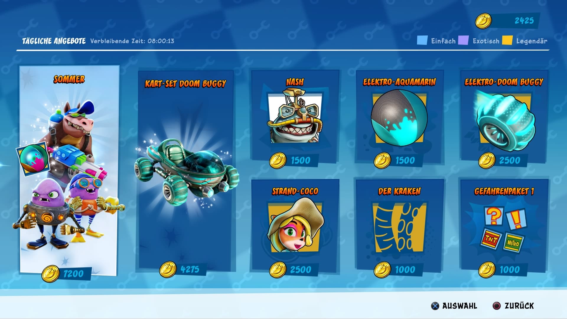 Die eben genannten Skins (Karts, Aufkleber, Felgen, Fahrer) können wir benutzen um unser Kart individuell anzupassen, damit es uns optisch zusagt. Sollten die gegebenen Anpassungs Gegenstände nicht zu unserer Zufriedenheit sein, können wir mit den eben genannten Wumpa Münzen noch weitere Fahrer und Skins freischalten. Doch diese kosten einige Wumpa Münzen, verdienen wir pro Rennen im Schnitt 130 Münzen, kosten viele Items gut 1200 Münzen. Hier zeigt sich, dass das Freischalten aller Gegenstände in einen regelrechten Grind ausarten kann.