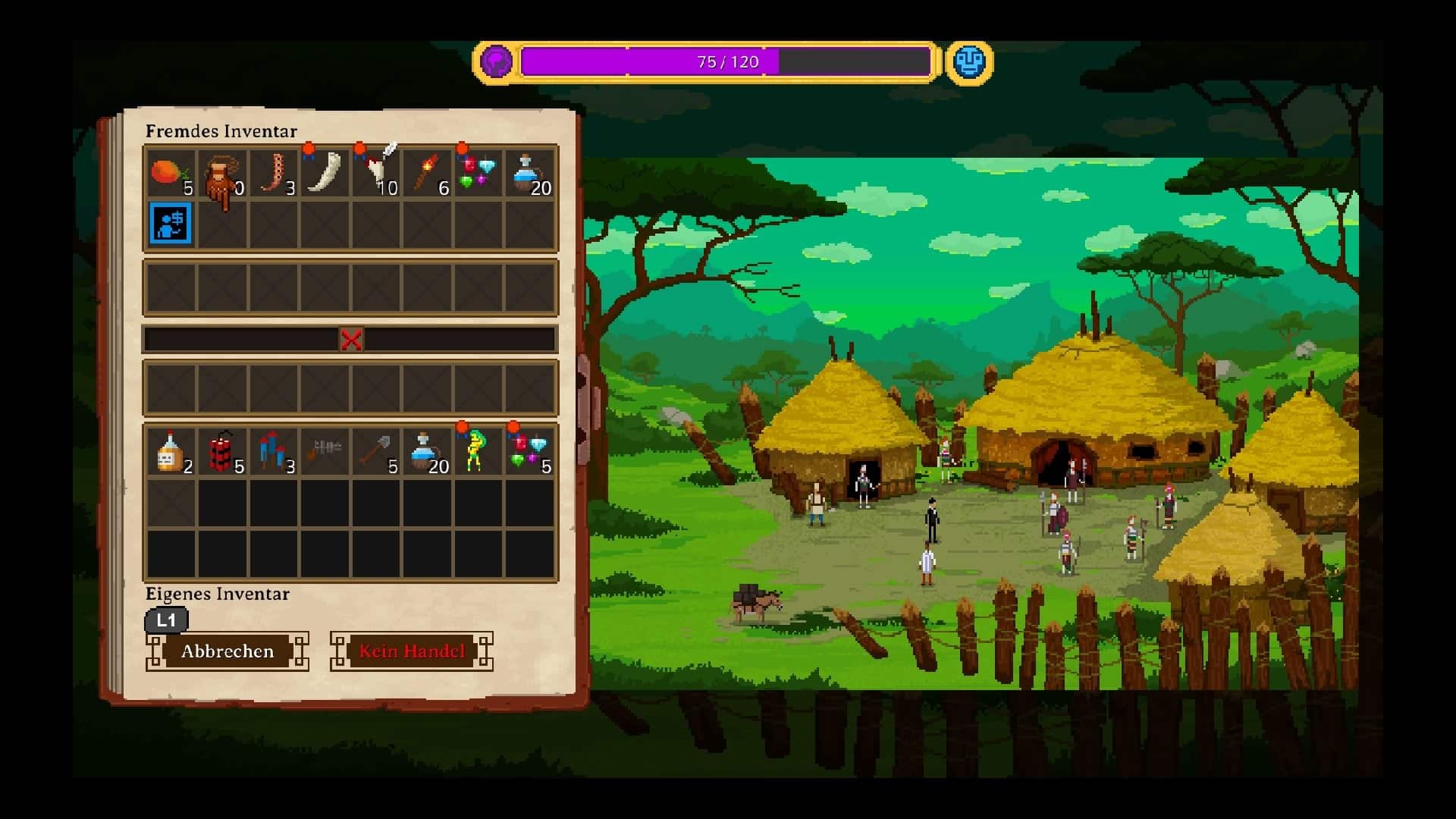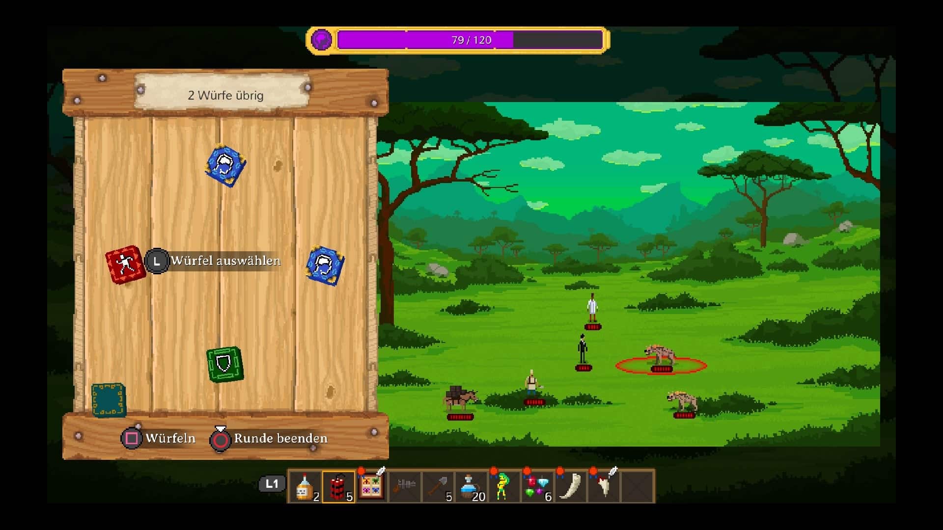 In der damaligen Zeit war es nicht unüblich, Sklavenhandel zu treiben, andere Völker zu unterdrücken oder seine Interessen mit Waffengewalt durchzusetzen. Diese Möglichkeiten stehen euch natürlich auch offen um eure Expedition voranzutreiben ihr müsst dies lediglich mit euren Gewissen vereinbaren. Zu Kämpfen mit Eingeborenen oder wilden Tieren kann es natürlich auch kommen. Hier sind die Stats eurer Mitstreiter interessant, diese werde in Form von Würfeln dargestellt, es gibt defensive Stats oder offensive Stats. Kommt es nun zu einem Kampf, würfelt ihr eure Aktionen aus, fast wie in einem Dungeons and Dragons Spiel. Das ganze System ist nach einer kurzen Eingewöhnung leicht zu verstehen, nachdem man das kurze Tutorial gespielt hat. Auch wenn das ganze Spiel durch seine Pixeloptik sehr einfach wirkt, ist es doch komplex, aber nicht überfordernd. Die vereinfachte Optik passt perfekt, so kann man sich auf das Wesentliche konzentrieren, Fremde Welten zu erkunden.