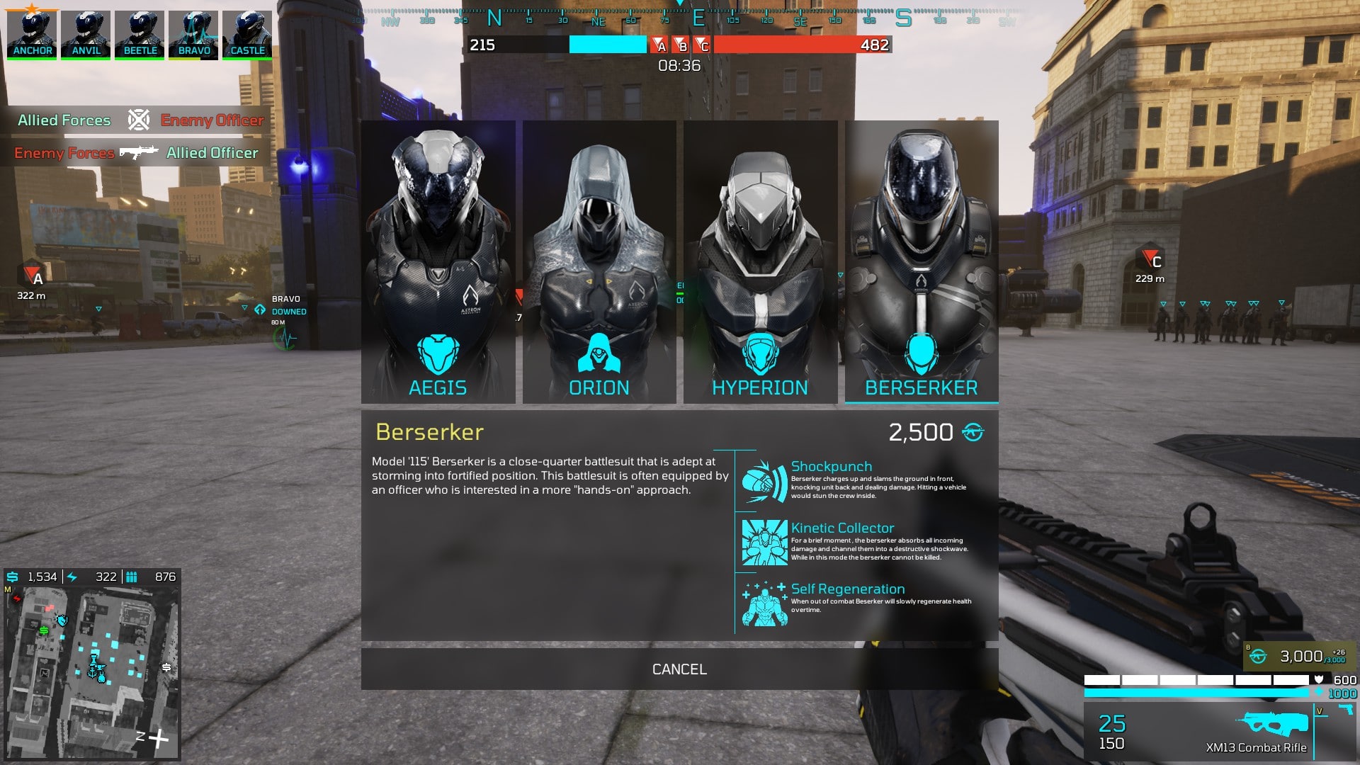 Eximius: Seize the Frontline spielt in einer nahen post apokalytischen Zukunft. Zwei große Fraktionen kämpfen um die Vorherrschaft der Erde. So viel zu der Story, welche nicht viel zu bieten hat, aber muss sie das auch? Nein, denn Eximius: Seize the Frontline ist ein Spiel, welches gänzlich ohne Story auskommt. Der Fokus liegt klar auf dem PVP Aspekt. In packenden 5 vs 5 Gefechten liefert man sich erbitterte Kämpfe um Punkte auf der Karte. Auf dem Schlachtfeld sind jedoch mehr als nur 10 Kämpfer anwesend, lediglich 5 auf jeder Seite werden von echten Spielern gesteuert. Der Rest wird von der KI kontrolliert, sowie dem Commander. Jede der beiden Seiten hat einen Commander, welcher zuvor bestimmt wird, seine Aufgabe ist es die KI Einheiten auszubilden, Gebäude zu erstellen und Befehle zu erteilen. Alles geschieht in einer typischen Vogelperspektive, wie in einem waschechten RTS-Game. Der Commander kann natürlich auch in das Kampfgeschehen aktiv eingreifen, denn jederzeit ist ein Wechsel von der Taktik-Ansicht in die Ego-Perspektive möglich.