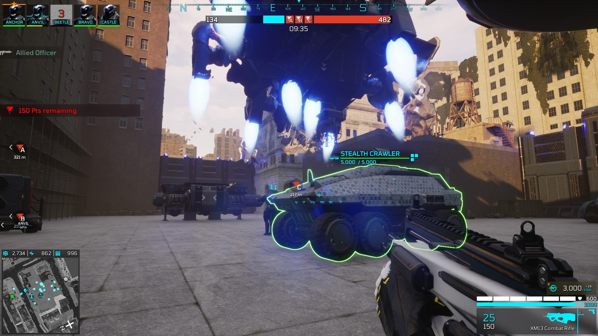 Zusätzlich zum Commander sind dann noch 4 Offiziere im Team, welche den Kampf-Part übernehmen. Diese nehmen Punkte an der Front ein, um den Feind zurückzuschlagen. Der Commander kann den Offizieren zum Beispiel weitere KI Einheiten zur Seite stellen, wenn Hilfe bei der Eroberung benötigt wird. Die Offiziere sind neben den Kampffähigkeiten auch eine Hilfe für den Commander, denn es gibt verschiedene Punkte die erobert werden müssen. Es gibt Punkte, welche dem Feind Tickets abziehen, Punkte für Waffenabwürfe sowie Punkte für Ressourcen. Gerade die Ressourcen Punkte sind wichtig, um so mehr gehalten werden, um so mehr Ressourcen stehen dem Commander für die Ausbildung der Einheiten zur Verfügung. Alles hat einen Einfluss und fügt sich zu einem komplizierten Gesamtkonstrukt zusammen.