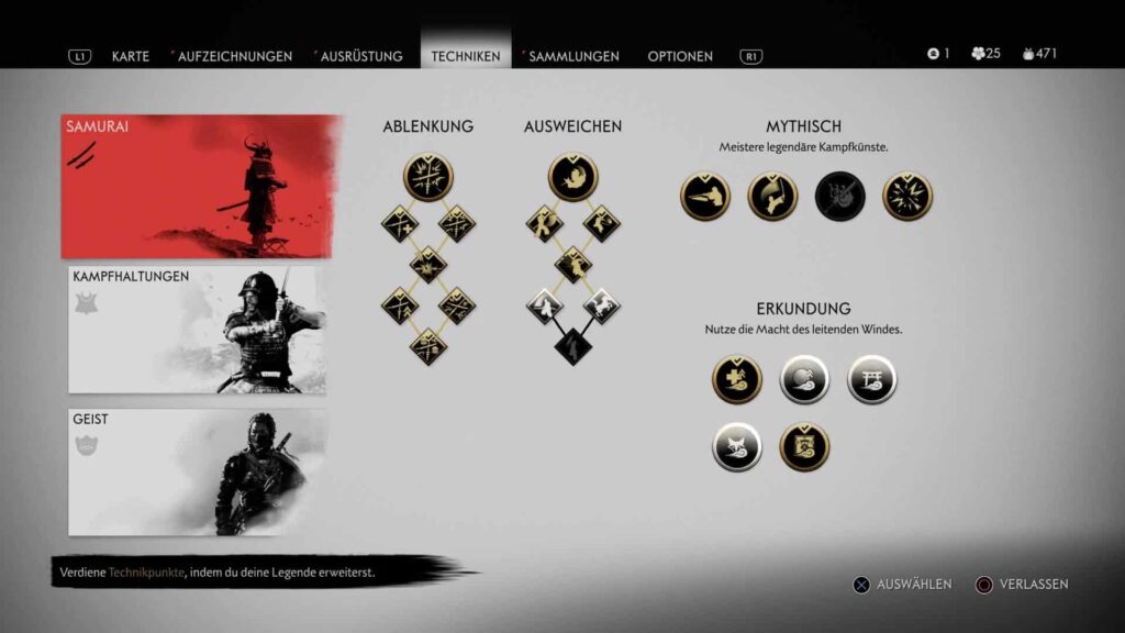 Durch gewonnene Erfahrung schalten wir im Verlauf des Abenteuers stetig neue Fähigkeiten für den letzten Samurai frei. Keine der zahlreichen Verbesserungen wirkt hierbei unnötig, ganz im Gegenteil. Ein ausgegebener Fähigkeitspunkt ist in Ghost of Tsushima wichtig, dies ist deutlich zu spüren und macht des Erlebnis nochmals intensiver. So lernen wir unter anderem neue Techniken für unsere vier verschiedenen Schwerthaltungen, welche je nach Gegner euch einen gewissen Vorteil verschaffen können. Zudem verbessern wir unsere Schleichkünste, lernen besser zu blocken oder umhüllen unser Katana mit Feuer (was nicht nur effektiv ist sondern auch noch spektakulär aussieht).