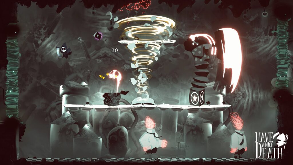 „Have a Nice Death“ ist ein handgezeichnetes 2D Action Roguelike, in dem ihr die Rolle des Tods höchstpersönlich übernehmt, Gründer und CEO von Death Incorporated, der riesigen Unterweltorganisation die für die Verarbeitung der Seelen im Jenseits verantwortlich ist. Als oberster Anführer der Firma werdet ihr die dunkel charmanten, prozedural generierten Abteilungen des Firmensitzes erkunden, um abtrünnige Mitarbeiter einzufangen und zu rehabilitieren, die sich nicht an die Firmenvorschriften gehalten haben und viel zu viele Seelen auf der Erde geschnappt haben. Die Abteilungsleiter (Bosse) – auch bekannt als Sorrows – und ihre Schergen unter Kontrolle zu bringen ist jedoch eine schwierige Aufgabe und erfordert mehrere nervenaufreibende Durchläufe. Zum Glück habt ihr ein Arsenal an Waffen, Zaubern, Flüchen und besonderen Fähigkeiten zur Hand, um die Arbeit zu erledigen.
