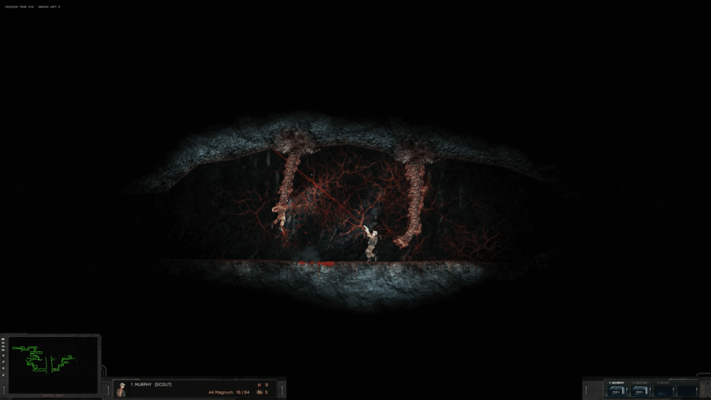 Wie bereits erwähnt, hat sich Hidden Deep von Half-Life, sowie The Thing inspirieren lassen, dies merkt man relativ schnell in der Atmosphäre, welche vermittelt wird. Alles wirkt befremdlich, beklemmend und man hat absolut keinen Schimmer, was um einen geschieht, bzw. was die Auslöser für die Ereignisse sind. Hier muss ich auch direkt schon das Ende der aktuellen Early-Access Version von Hidden Deep vorwegnehmen, ihr werdet es nicht erfahren. Cogwheel Software lässt den Spieler komplett im Dunkeln, was es mit dem Höhlensystem auf sich hat, was wir erkunden, woher kommen die Monster, warum ist hier unten ein Atomreaktor oder an was wurde hier unten überhaupt geforscht? Doch das ist nur ein kleines Vorwort, da es mich wirklich sehr gestört hat. Es wird einem ein wenig Story zu Beginn vermittelt, wir sind eine Art Rettungsteam, welches ein verschollenes Forschungsteam aus einem Höllensystem bergen soll, denn hier ist der Funkkontakt abgebrochen. Dieser dünne Handlungsstrang hat definitiv seine Daseinsberechtigung, denn gerade die Unwissenheit macht Hidden Deep so klaustrophobisch, man steigt in ein Höhlensystem hinab, ohne zu wissen, was einen erwartet. Verstärkt wird dieses Gefühl noch durch die eingeschränkte Sicht, denn lediglich mit einer Taschenlampe leuchten wir uns die Gewölbe aus.![]()