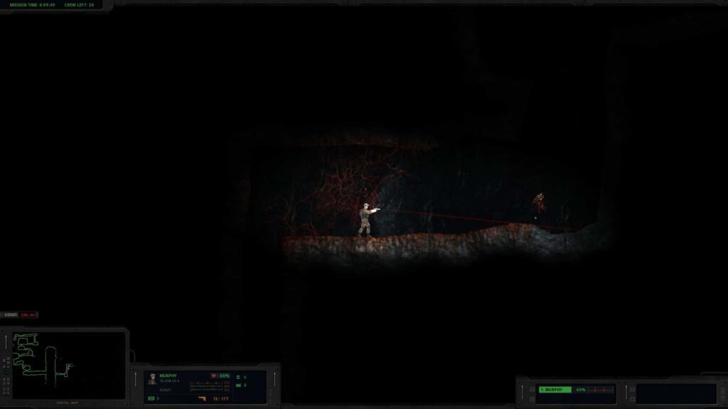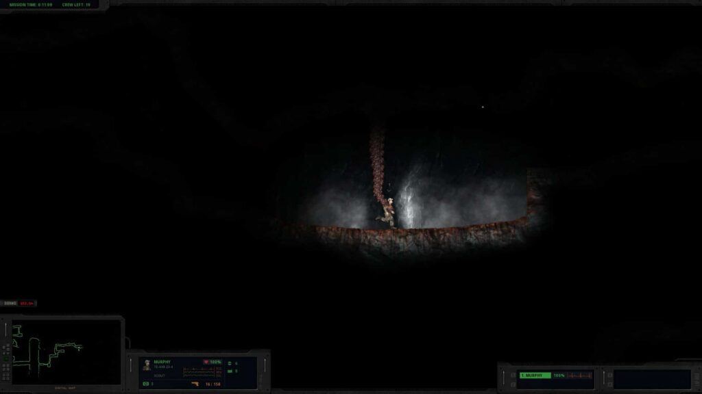 Im Laufe der Kampagne bekommen wir Hilfe in der Tiefe, spielt man zu Beginn nur als Späher, welcher bewaffnet ist und die Höhlen erkundet, so kommt irgendwann der Ingenieur ins Spiel. Dieser kann die Baumaschinen bedienen, welche zurückgelassen wurden. Eine nette Idee, doch hier fängt das Spiel an, seine Schwächen zu offenbaren. Die Physik-Engine neigt dazu, einem das Leben schwer zu machen und die Baumaschinen sind schwer zu kontrollieren. Ebenso locken die Baumaschinen mit ihrem Lärm Gegner an, kein Problem, schließlich haben wir einen bewaffneten Späher. Tja, da haben wir die Rechnung ohne die nicht gerade clevere KI gemacht, denn diese schießt nicht gerade zuverlässig auf die Gegner. Mit einem Tastendruck wechseln wir von unserem Ingenieur zu dem Späher und schalten die Gegner aus, um im Anschluss wieder zurückzuwechseln, damit die Arbeit fortgeführt werden kann. Dieser Umstand löst oftmals unnötigen Stress aus, man kann diese Probleme jedoch im Splitscreen Koop umgehen. So kann das Spiel zu Zweit gespielt werden, jeder steuert einen Charakter. Mühsam erkundet man nun so die Höhlensysteme, gewöhnt sich an die Spielmechaniken und fühlt sich langsam sicher im Umgang mit der Physik, dann ist die Kampagne auch schon beendet. Es wirkt quasi wie, uns sind die Ideen ausgegangen, lass uns das Spiel veröffentlichen. Keinerlei Aufklärung, was hier passiert und wieso hier geforscht wurde oder ähnliches. Das ist leider ein wenig enttäuschend, vielleicht wird der Spieler im Full Release mehr Story bekommen. Neben der Kampagne ist noch ein Herausforderungs-Modus enthalten, der einem verschiedene Aufgaben an die Hand gibt, in zufallsgenerierten Höhlen. Ein netter Zusatz, um Spieler bei der Stange zu halten, jedoch konnte es mich nur eine kurze Zeit beschäftigen, was vielleicht immer noch der Enttäuschung geschuldet ist, nichts über die Hintergründe in der Höhle zu wissen.![]()