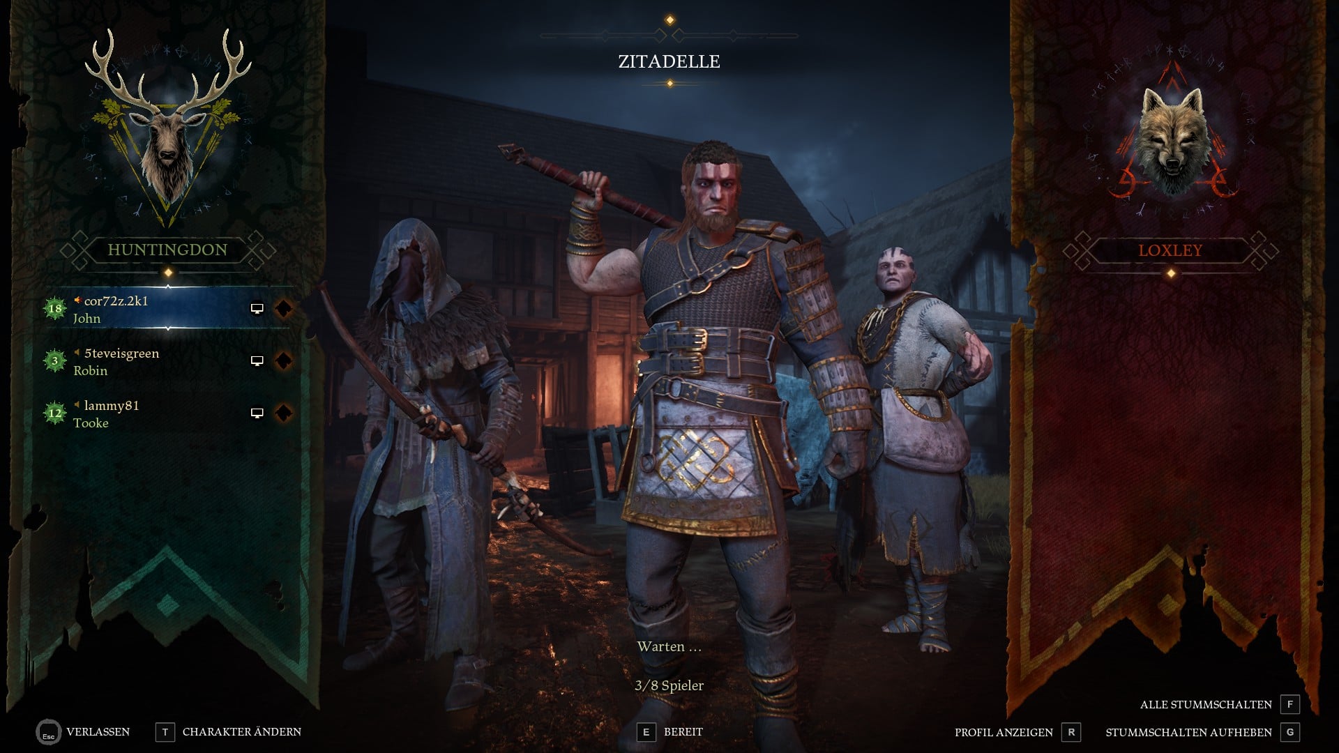 Für welche Klasse ihr euch auch entscheiden solltet, der einfachste Weg ist immer der leise Weg. Denn sobald die Wachen Alarm geschlagen haben, seid ihr auf der Karte für das gegnerische Team sichtbar und Tore werden abgeriegelt. Somit empfiehlt sich bereits vor Spielbeginn, eine Strategie festzulegen. Wer nimmt welchen Charakter? Robin den Ranger, Marianne die Assasine, John den Tank oder Tooke den Supporter. Somit hat man jeweils zwei Brawler und zwei Bogenschützen zur Auswahl. Besonders ist hier der Umstand, dass jeder den gleichen Charakter wählen kann. Somit sind Kombinationen von vier Johns gegen vier Johns in einer Lobby möglich. Ob man das nun gut findet oder nicht, muss man für sich selbst entscheiden. Jedoch geht hier wieder eine Menge Balancing verloren. Das Kampfsystem an sich wirkt gut. Wenn man nicht entdeckt wurde, kann man einen Computer- oder Spielergegner per Tastendruck von hinten lautlos ausschalten. Das funktioniert meist auch gut, nur die Animationen sind hier manchmal ein wenig unschön. So vergeht Spielrunde für Spielrunde. Als Belohnung nimmt man Erfahrung und Gold mit aus den Matches. Mit der Erfahrung schaltet man neue Skins für Waffen, sowie Kleidung frei, außerdem schaltet man Talente für die jeweiligen Charaktere frei. Mit dem Gold kann man dann die eben genannten Fähigkeiten oder kosmetischen Items freischalten. Dies geschieht in einem Unterschlupf, welcher auch gleichzeitig als Trainingsgelände dient. Wem die Strohpuppen zum Trainieren nicht reichen, der kann auch einen reinen PVE Trainingsmodus spielen. Hier könnt ihr mit vier Spielern die Karten kennenlernen und eure Kampftechnik verfeinern. Leider verdient ihr hier keine Erfahrung oder Gold.![]()
