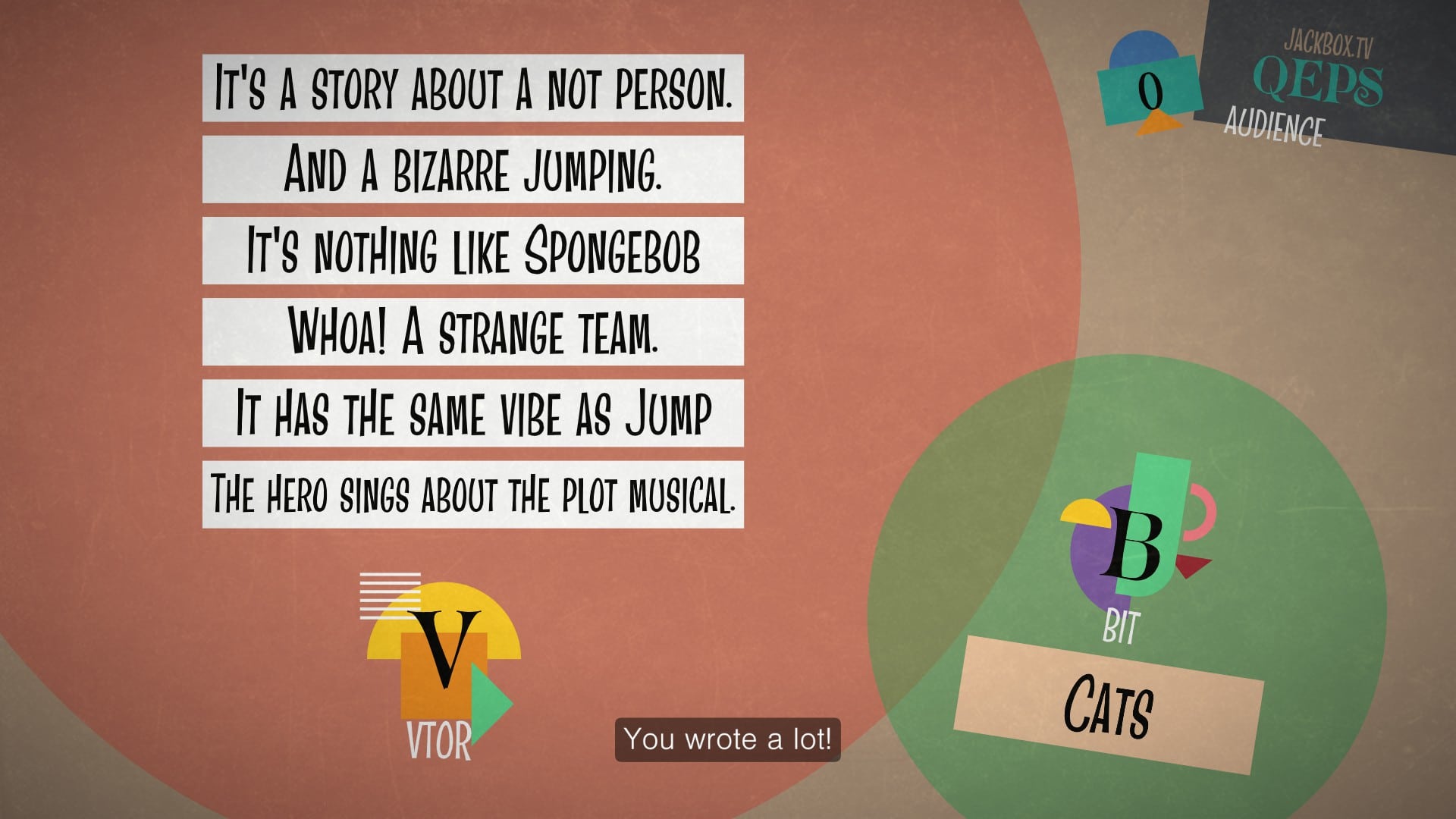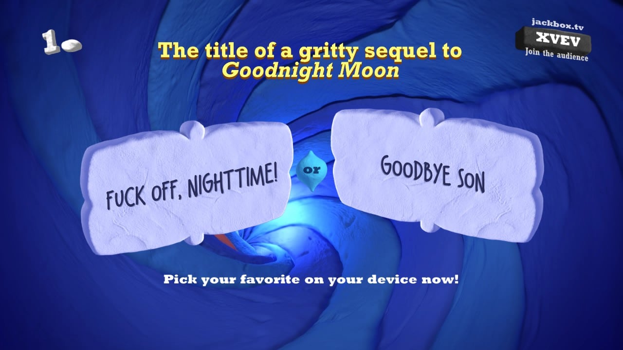 - Quiplash 3 – Dieser Modus ist vergleichbar mit „Cards against Humanity“. Vervollständige einen Satz oder Beantworte eine Frage. Natürlich möglichst kreativ und humorvoll, danach stimmen die Spieler für die beste Antwort ab. Ein Modus, welcher nach 3 Runden relativ schnell vorbei ist.