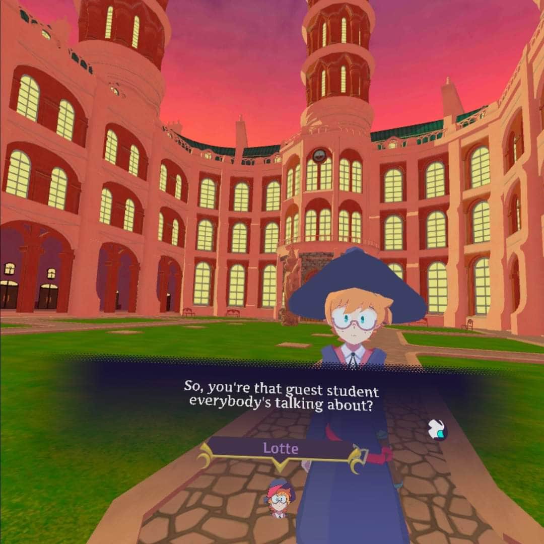 Mit LWA (Little Witch Academia) betreten wir die Welt der Magie und Hexenbesen. Somit dreht sich das Spiel eben auch um Hexenbesenrennen, für mich kein absolutes Neuland, so spielte ich seiner Zeit mit meiner Tochter bereits Bibi Blocksbergˋs großes Hexenbesenrennen auf der Wii. Zu Spielbeginn wird man mit einem stylisch gemachten Intro begrüßt, welches aber in seiner Präsentation wieder enttäuscht. Ein Video, welches wie auf eine Art Leinwand vor einen projiziert wird, dies wirkt nicht gerade ansprechend. Die nächsten Minuten des Spiels vergehen, mit allerlei Dialog, der uns in das Spiel einführen soll. Auf Wunsch in Japanisch oder Englisch, Deutsch ist nicht im Spiel enthalten. Die Cut Scenes und die allgemeine Grafik, sind Durchschnitt, leider sind die Kanten der Sprites oftmals ein wenig unsauber. Der gesamte Stil ist in Anime typischer Optik gehalten, wie gesagt, passend aber nicht das schönste was ich bisher auf der Quest gesehen habe.![]()