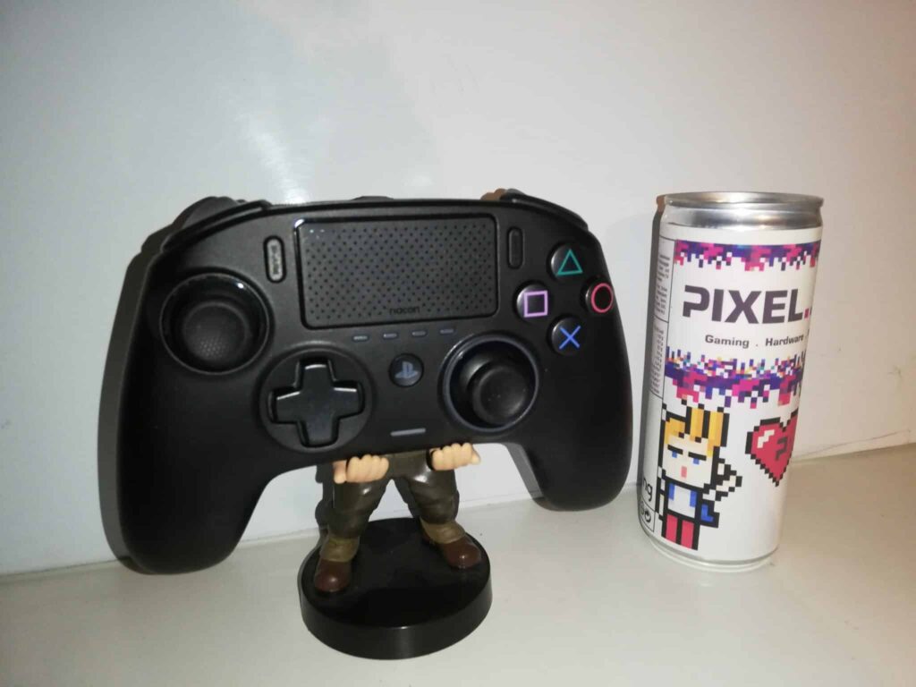 Weitere Besonderheiten des Nacon sind die asymmetrisch angeordneten Analog Sticks, wie wir es von den Xbox-Controllern gewohnt sind, als besonderer Clou sind diese konkav geformt. Das D-Pad sowie die vier Eingabe-Buttons sind direkt und machen was sie sollen. Jedoch wird es bei der L1 und R1 Taste erst richtig interessant, diese beiden betätigen Microswitches, welche sehr präzise auf unsere Eingaben reagieren. Die R2 und L2 Trigger haben einen längeren Weg im Vergleich zum Dualshock 4, mechanische Triggerstops sind leider nicht verbaut, was aber nicht schlimm ist, hier drauf gehe ich später aber noch einmal ein. Ansonsten haben wir noch das Touchpad, die Share- sowie Optionen-Taste. Auf eine Lichtleiste oder einen internen Lautsprecher müssen wir verzichten, somit ist er leider für Spiele, welche auf Bewegungssteuerung nicht geeignet. Wer gerne noch nebenbei Chatten möchte, hat wie bei dem Sony Standard Eingabegerät auch einen 3,5 mm Anschluss mit dabei. Was den Revolution Pro 3 aber besonders macht, sind seine vier frei konfigurierbaren Tasten, von welchen jeweils zwei pro Seite angebracht sind. Die Position ist zwar gewöhnungsbedürftig im Vergleich mit einem Razer Raiju oder Scuf Controller, da diese Buttons aber nur eine geringe Betätigung benötigen, sind sie doch gut gelungen.