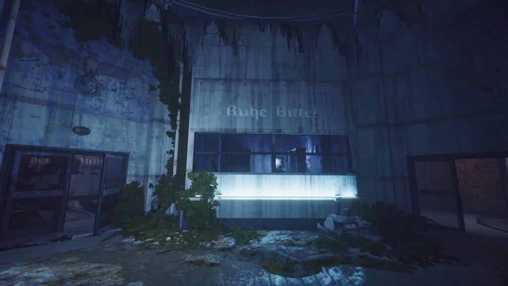 Die größten Probleme hat Paradise Lost aber nicht in der unausgewogenen, teilweise dissonanten Präsentation, sondern ganz eindeutig in seiner Geschichte und mit seinen Charakteren. Das Spiel ist dramaturgisch in die Kübler-Ross-Phasen der Trauerbewältigung aufgeteilt — das geben zumindest die Kapitelüberschriften vor. Motive dieser Überschriften lassen sich aber nur in der Hintergrundgeschichte identifizieren, nicht in der Charakterisierung unseres Protagonisten Szymon, der ja eigentlich hier zu sein scheint, um den Tod seiner Mutter aufzuarbeiten. Szymon bleibt bis zum Ende größtenteils unbeeindruckt von den Dingen, die mit ihm und um ihn herum in dieser ehemaligen Nazianlage passieren. Dabei hilft es auch nicht, dass wir ab und zu in Dialogen mit unserer entfernten Begleiterin aus den Lautsprecheranlagen Antwortmöglichkeiten auswählen können. Zumindest falls der Spieler schnell genug ist innerhalb eines bemerkenswert kurzen Zeitfensters diese Auswahl zu treffen, bevor das Spiel uns die Entscheidung doch wieder abnimmt oder wir einen ungeduldigen Kommentar ernten. Für ein so behäbiges Spiel geradezu unverschämt.