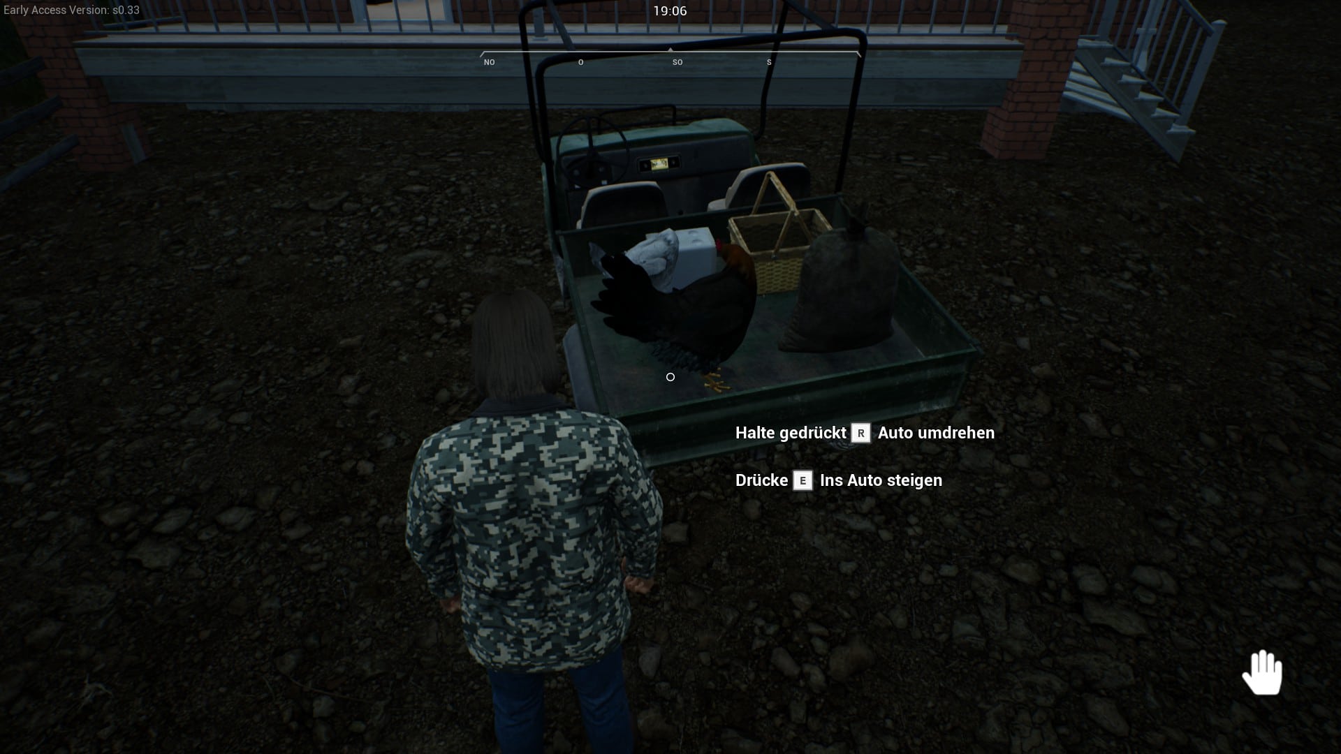 Das Ranch Sim aktuell noch im Early Access ist, merkt man am Umfang der Spielwelt. Die Basis ist geschaffen, jedoch sind einige Spielbereiche noch nicht betretbar und Teile der Spielwelt wirken noch unfertig. So ist zum Beispiel der Baumarkt noch ohne Funktion. Im Laufe des Jahres sollen noch eine Menge Funktionen hinzukommen. Was man definitiv sagen kann, die Basis ist geschaffen und das Konzept weiß zu überzeugen. Bisher kann man sich auf die Zucht der zuvor genannten drei Tierarten spezialisieren, Jagen gehen, den Hof ausbauen und neue Fahrzeuge kaufen. Wenn man diese Aufgaben alleine bewerkstelligen möchte, hat man schon ein paar Stunden zu tun. Natürlich kann man diese Aufgaben auch mit drei weiteren Freunden Online in Angriff nehmen, das geht dann natürlich schneller. Das erste Update, welches für April 2021 geplant ist, soll zum Beispiel eine Milch- und Fleischverarbeitung ermöglichen. Man darf gespannt sein. Ackerbau war bisher noch nicht möglich, ich denke auch hier wird nicht der Fokus drauf gelegt. Für Freunde der vollen Immersion besteht die Möglichkeit auch in der Ego-Perspektive zu spielen, obwohl ich die Third Person bevorzugte.
