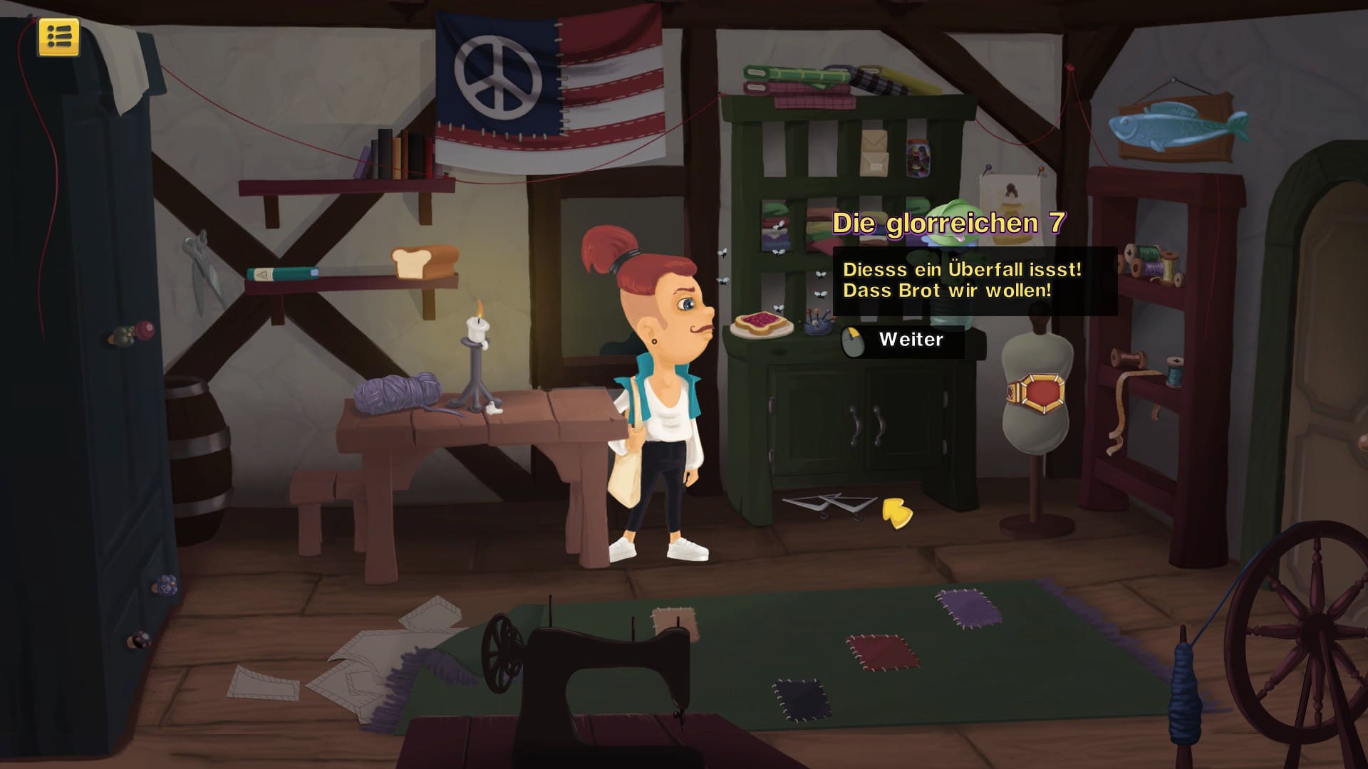 Nicht alles kann gut sein, leider hatte ich auch zwei kleinere negative Eindrücke. Diese waren nicht gravierend, jedoch möchte ich sie hier trotzdem anführen. Es kam ein paar Mal dazu, dass Siebenstreich im Pathfinding hängen geblieben ist. Somit konnte ich den Charakter nicht mehr bewegen. Nach dem neu Laden des letzten Spielstandes war das Problem auch schon wieder behoben. Wie gesagt, nicht weltbewegendes. Neben dem Pathfinding Problem ist mir noch etwas anderes aufgefallen. Leider wird einem nicht angezeigt, mit welchen Objekte man interagieren kann. Nicht einmal eine Dialogbox beim Mouse Over erscheint. Somit muss man des Öfteren per Trial und Error schauen, was sich benutzen lässt. Hier haben wir eher einen negativ Punkt in Sachen Komfort, jedoch auch nicht sehr gewichtig. Ein Punkt welchen ich eher als neutral ansehen würde, ist die Sprachausgabe. Es ist eine vorhanden, zumindest so halb, jeder Charakter wird mit einer anderen Stimme vertont, jedoch bestehen die Voice Lines nur aus Kauderwelsch. Angesichts der kleinen Entwickler-Teamgröße von zwei Leuten lässt sich dies verschmerzen.![]()