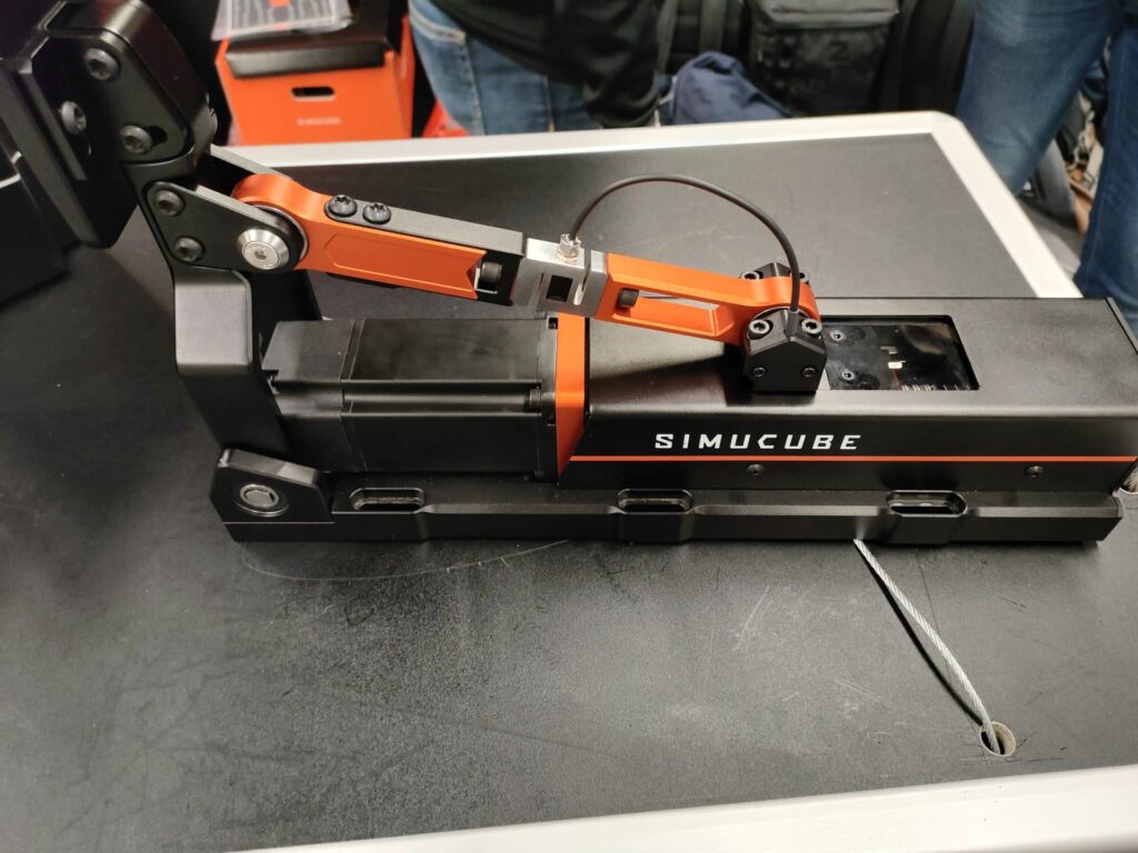 Ein Bremspedal welches einen gewissen Gegendruck simulieren soll, jedoch nicht mit Hydraulik ausgestattet ist, wie soll das funktionieren, war mein erster Gedanke. Am Stand von Simucube angekommen wurde mir direkt erst einmal das ActivePedal in natura gezeigt und die Funktionsweise erklärt. Eine motorisierte Drehspindel bildet quasi das Herzstück der Pedalerie, hierüber wird der Gegendruck des Pedals gesteuert, der ausgeübte Druck des Fahrers wird über ein kleines Piezo Element in der Stange des Pedals gemessen. Anhand einer Software lässt sich so nun der Gegendruck des Pedals anhand des vom Fahrer aufgewendeten Drucks einstellen. Nach der kurzen Einführung wurde es dann Zeit einen ersten Turn auf dem von Simucube aufgebauten Rig zu nehmen. Das Setup war ein absoluter Overkill, drei ActivePedals, wovon ich nur zwei benötigte, da ich die Kupplung nicht benutzt habe, in Verbindung mit der Simucube Ultimate Wheelbase. Gespielt wurde auf einem großen Curved Monitor, welcher sich in das Rig perfekt eingefügt hat.