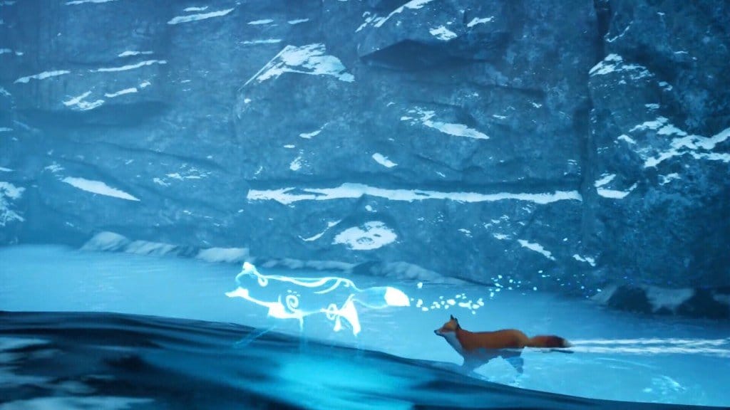 Die komplette Story kann man genießen ohne Angst vor dem frühzeitigen Ableben zu haben. Es gibt keine Gegner und Fallschaden existiert auch nicht. Somit kann man sich vollkommen auf die von Island inspirierte Landschaft einlassen und vollends in einer mitreißenden Story abtauchen. Allerhand Rätsel warten darauf gelöst zu werden, zumeist benutzen wir hierfür unsere mystischen Fuchs-Kräfte, von denen wir immer wieder neue erlernen im Laufe des Spiels. Die Rätsel sind nicht allzu fordernd, aber auch nicht zu leicht. Schwerer hingegen sind einige Sprungpassagen, hier bin ich während meines Tests fasst an meine Belastungsgrenze gelangt. Auch wenn wir beim stürzen nicht sterben können, so sind manche der Passagen doch nervig und ich benötigte einige Anläufe. Erschwerend kommt hinzu, dass zum Teil die Kollisionsabfrage nicht perfekt funktioniert und man an Kanten hängenbleibt. Optisch weiß Spirit of the North ebenfalls zu überzeugen, wenn auch einige Effekte nicht perfekt wie in einem Triple A Titel dargestellt sind. So wird viel Liebe auf die Details gelegt, fallen wir beispielsweise ins Wasser, so schüttelt sich unser Fuchs erst einmal das Wasser aus dem Fell.