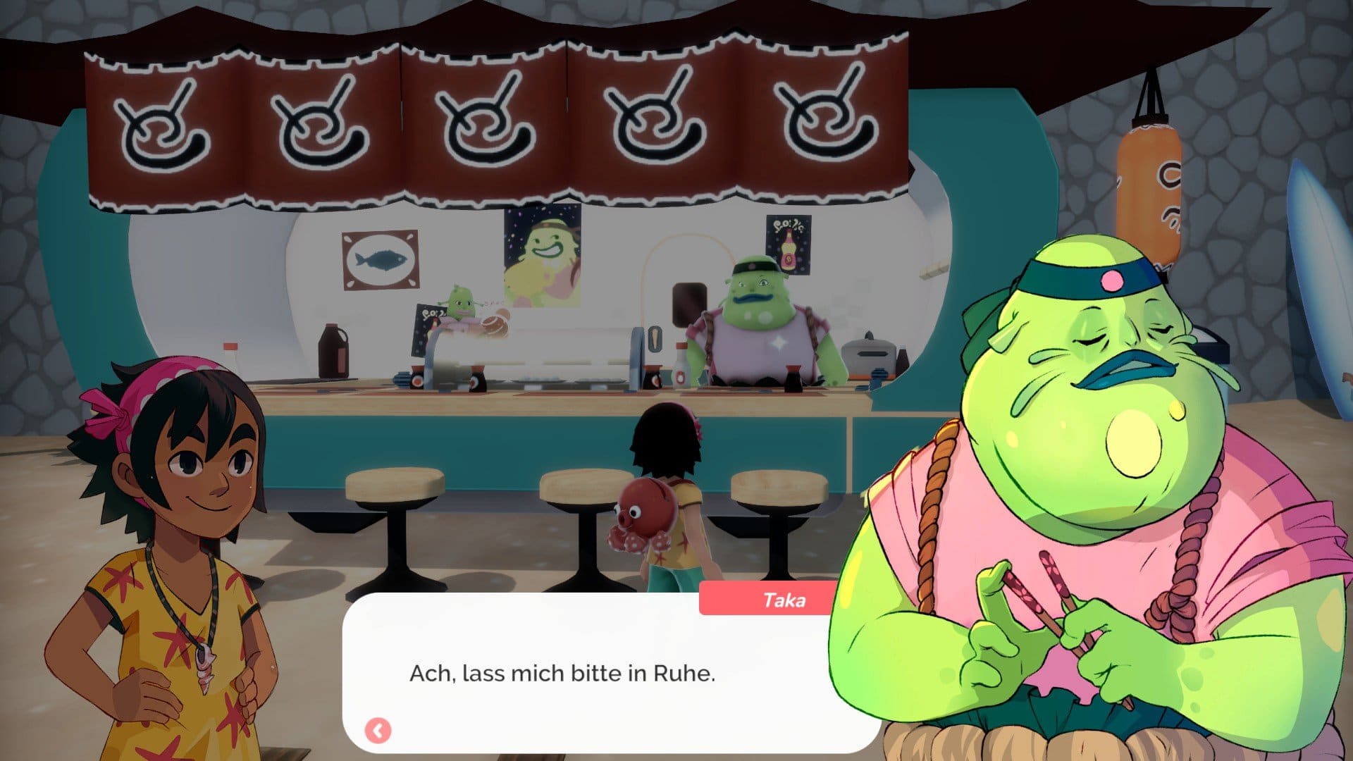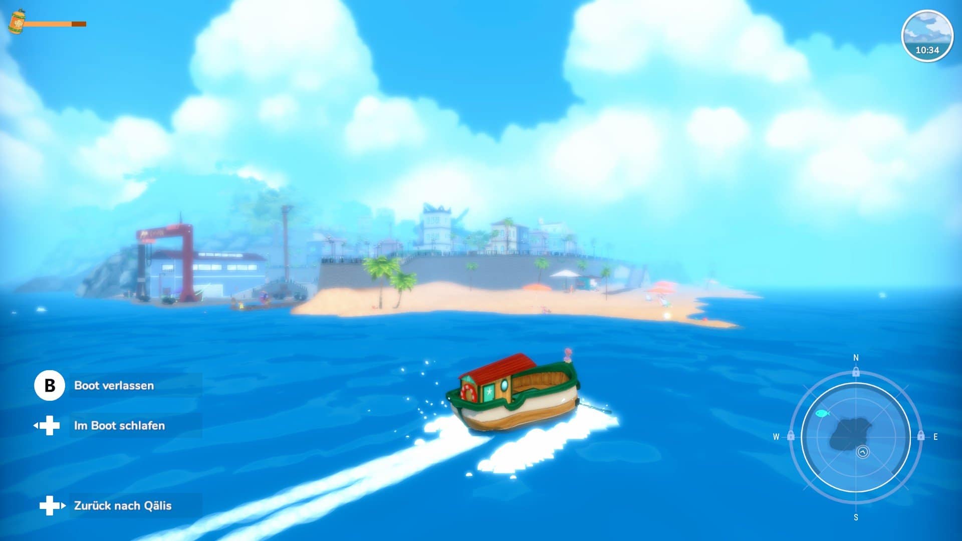Optisch sowie musikalisch weiß Summer in Mara es einen zu verzaubern. Besonders die gezeichneten Chibi-Style Figuren welche während Dialogen eingeblendet werden, sind eine Augenweide. Geht es raus auf das offene Meer, offenbart sich ein weiteres Spiel, was mit Sicherheit ebenfalls als Inspiration gedient hat, Zelda: Windwaker. Unweigerlich muss ich an diesen Titel denken, den alleine die Optik auf hoher See ähnelt sich doch stark. Eine Sprachausgabe existiert nicht, dafür aber deutsche Dialoge. Welche zum Teil leider nicht perfekt übersetzt wurden, so wird zum Beispiel aus „Holz hacken“, „Holz schneiden“. Positiv zu erwähnen ist auch ein wechselnder Tag- und Nachtzyklus, welcher eine gewisse Dynamik zum Gameplay hinzufügt. Nebst dieser Komponente ist auch eine Ausdauer- und Nahrungsleiste im Spiel vorhanden, diese Elemente nehmen dem ganzen Spielfluss ein wenig die Eintönigkeit.![]()