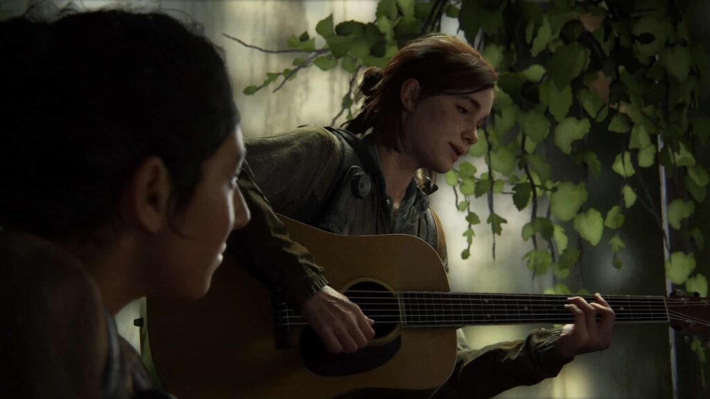 Während sich The Last of Us Part II also technisch auf allerhöchstem Niveau präsentiert und dazu ein bemerkenswert spannendes Gameplayfundament bietet, überstrapaziert es leider das höchste Gut des Storybasierten Spiels, die Handlung. Bei einer Laufzeit von 20-30 Stunden erlebt man zahlreiche eindrucksvolle, emotionale, herzzerreißende und schmerzhafte Höhepunkte, laute wie leise. Im Verlauf des Spiels wurden das aber so viele dieser Momente, dass sie nach und nach ihre Wirkung oder zumindest an Intensität für mich verloren haben. Dazu kommen geradezu redundant wiederkehrende Motive und teilweise sehr eigenwillige bis befremdliche Entscheidungen was die generelle Struktur des Spiels angeht; wesentliche Motivationen werden da schonmal als Twists in den wild zusammengewürfelten Flashbacks versteckt. Ein gutes, spoilerfreies Beispiel für die erwähnten Motive sind übrigens die – an teiweise völlig unpassenden Stellen im Spielverlauf positionierten – Gitarren, die zwar einen durchaus charmanten Rahmen um die Handlung legen, aber nur selten die erwünschte, emotional aufgeladene Metaphorik unterfüttern und stattdessen oft fremd und deplaziert wirken, sodass sie Charaktere und deren Motivation ein Stück unglaubwürdiger erscheinen lassen. Warum schafft es Ellie auf ihrem tödlichen Rachefeldzug nicht eine Woche lang die Finger von jeder herumliegenden Klampfe zu lassen? Selbst wenn hier ein derart stimmungsvoller Gitarrensimulator drin steckt, dass ich nach Abschluss des Spiels zum ersten mal seit drei Jahren meine eigene Gitarre abgestaubt und angestimmt habe.
