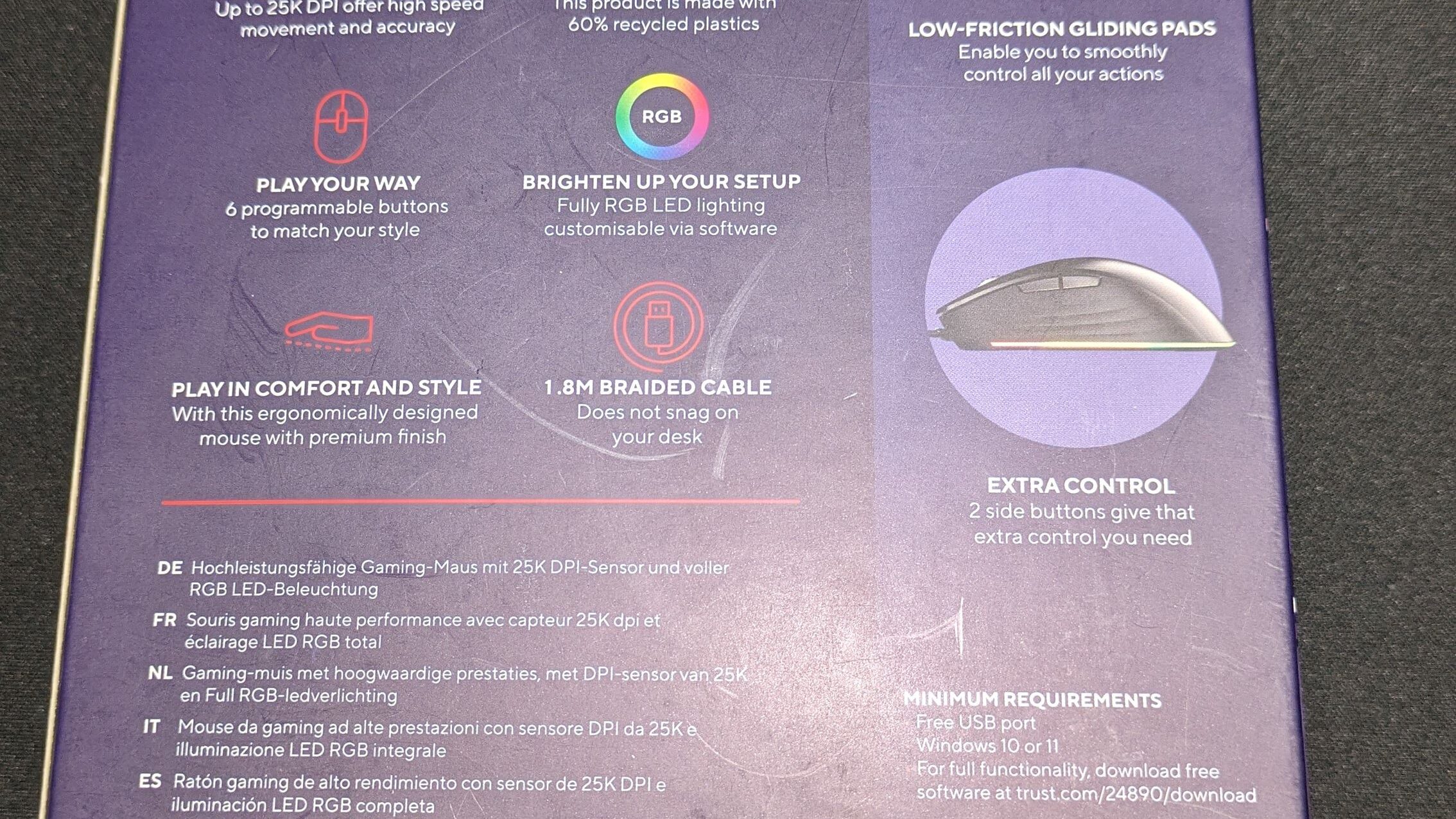 Allerdings fand ich die Software selbst etwas umständlich in der Bedienung. Die Benutzeroberfläche ist nicht so intuitiv, wie ich es gerne gehabt hätte, und es dauerte eine Weile, bis ich mich durch die verschiedenen Menüs navigiert hatte, um meine gewünschten Einstellungen vorzunehmen. Besonders die Beleuchtungssteuerung, insbesondere die Synchronisierung des Trust-Logos mit anderen Lichteffekten, war nicht so nahtlos, wie ich es erwartet hatte. Trotz dieser Herausforderungen bietet die Software jedoch die Flexibilität, die ich von einer Gaming-Maus erwarte, was letztendlich entscheidend für ein personalisiertes Gaming-Erlebnis ist.