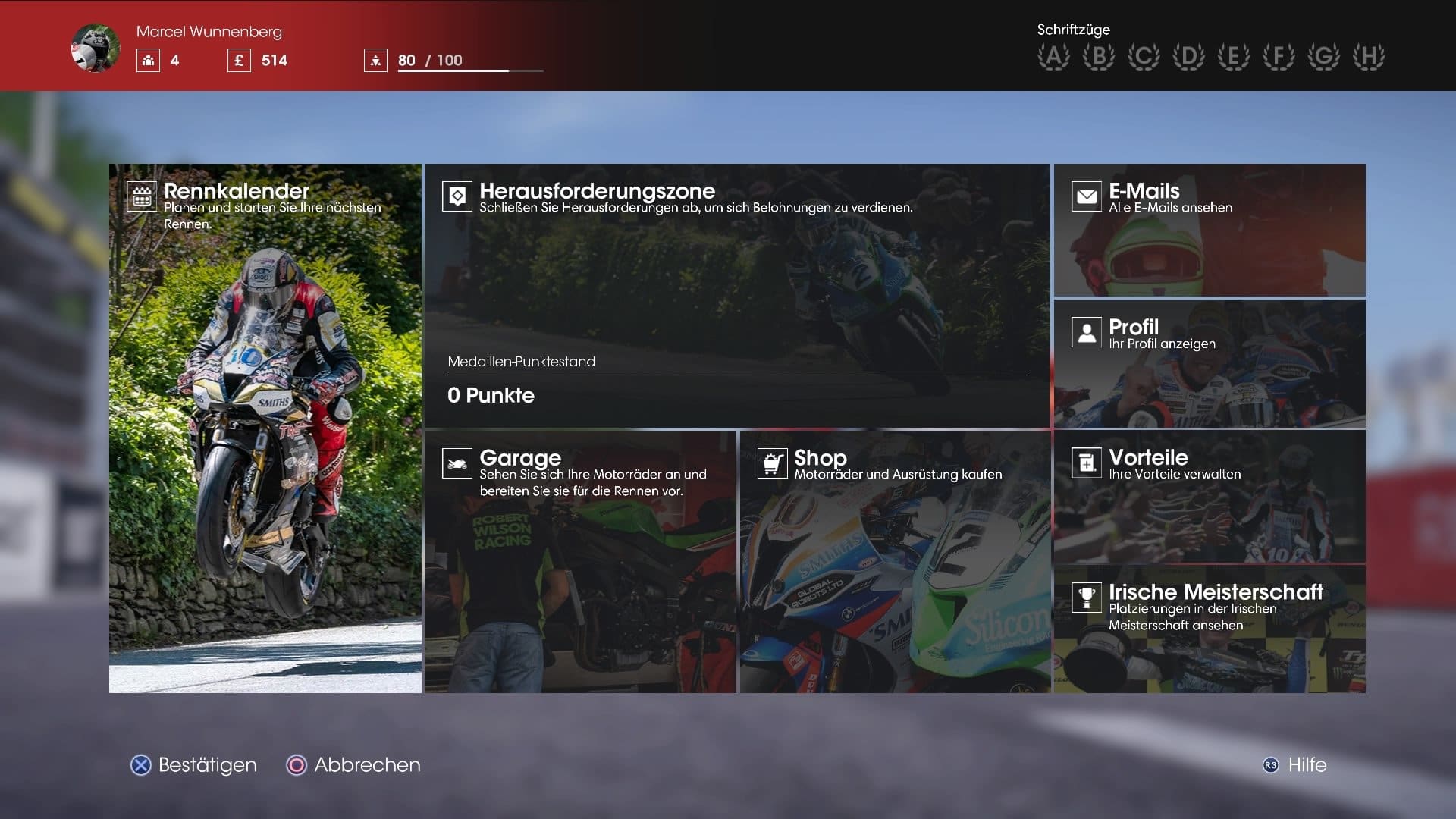 Nachdem ich nun halbwegs den Kniff raus habe, wage ich mich direkt in den Karrieremodus, welcher im aktuellen Teil neu ist. Im Grunde geht es darum, genug Punkte zu sammeln, damit man zur Tourist Trophy auf der Isle of Man zugelassen wird. Der Weg dorthin ist ganz uns selbst überlassen, in welchen Rennen wir Punkte sammeln, bei welchem Rennstall wir einen Vertrag unterschreiben oder wie wir unser Motorrad verbessern. Alles wirkt sehr durchdacht und ist Gott sei Dank nicht zu sehr überladen mit unnötigen Informationen. Der gesamte Aufbau im Karrieremodus ist logisch gestaltet, so dass man sich ohne viel Mühe auf das Renngeschehen konzentrieren kann. So fahren wir Rennen in Großbritannien oder Irland, um genug Punkte zu sammeln. Hier gibt es immer wieder verschiedene Rennklassen, vom Superbike zum Supersportler oder den Junior Cup. Viele Wege führen nach Rom, in diesem Fall aber eher zur Isle of Man.