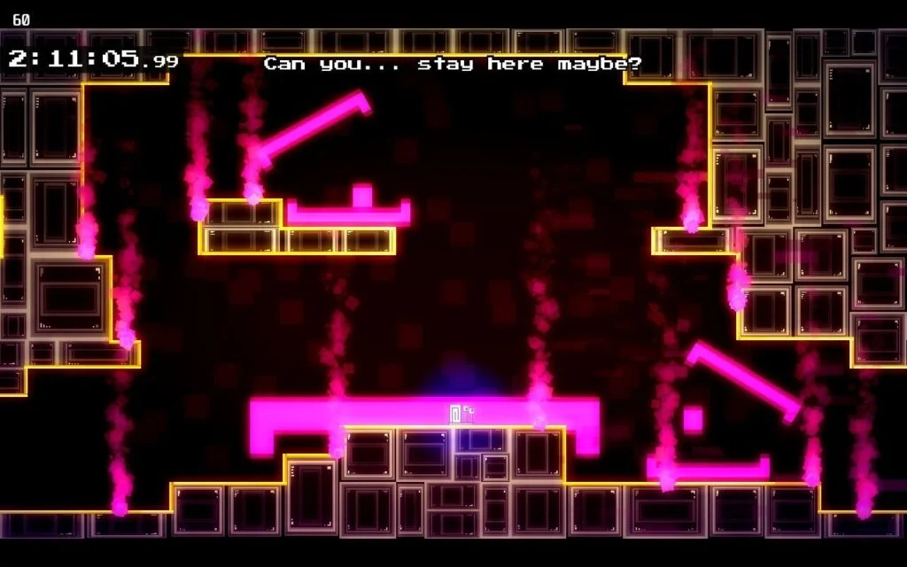 Will You Snail ist eines dieser typischen Spiele, welches ein außergewöhnliches Feature in den Vordergrund stellt. Das absolute Hauptmerkmal des Spiels stützt sich auf eine Art Verbindung des Spieles zum Spielenden selber. Denn die KI erkennt erahnt eure Bewegungsmuster und versucht so Hindernisse in den Weg zu stellen, dass ist aber nur ein Teil des Gesamtpakets. Doch bevor ich auf die Spielmechaniken eingehe, sollte man erst einmal wissen worum es bei Will You Snail geht, bzw. was überhaupt unsere Aufgabe ist. Wir sind eine kleine Schnecke namens Shelly, welche in einer Simulation festsitzt, in eben welcher Sie der bösen KI Squid als Gegenspieler gegenüber steht. Es gibt auch eine kleinere Geschichte, welche in Form von Textbotschaften erzählt wird, welche es im Laufe des Spiels zu finden gibt. Im Grunde ist Will You Snail ein Plattformer, mit allerhand Überraschungen und einem doch nicht unerheblichen Schwierigkeitsgrad. Die simple Steuerung kann einen zu Beginn noch täuschen, so gibt es lediglich eine Taste zum Springen, sowie die Möglichkeit sich nach Rechts oder Links zu bewegen. In den ersten paar Minuten analysiert das Spiel wie gut man in Plattforming Spielen ist und weißt einem eine Schwierigkeit zu. Eigentlich entscheidet nicht das Spiel über eure Fähigkeiten, viel mehr ist Squid, die böse KI immer allgegenwärtig auf dem Bildschirm und bombardiert uns fortlaufend mit Kommentaren zu unserem aktuellen Spielverhalten.![]()